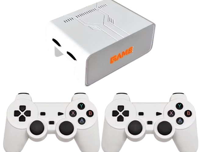 O formato é mais robusto, lembrando um mini console ao invés de um pen drive HDMI. Isso permite melhor ventilação e menos delay nos controles. Os dois joysticks inclusos têm construção sólida, gatilhos analógicos e carregamento via cabo, eliminando a necessidade de pilhas. Visualmente, eles lembram o controle do PS3, entregando ergonomia e confiabilidade.